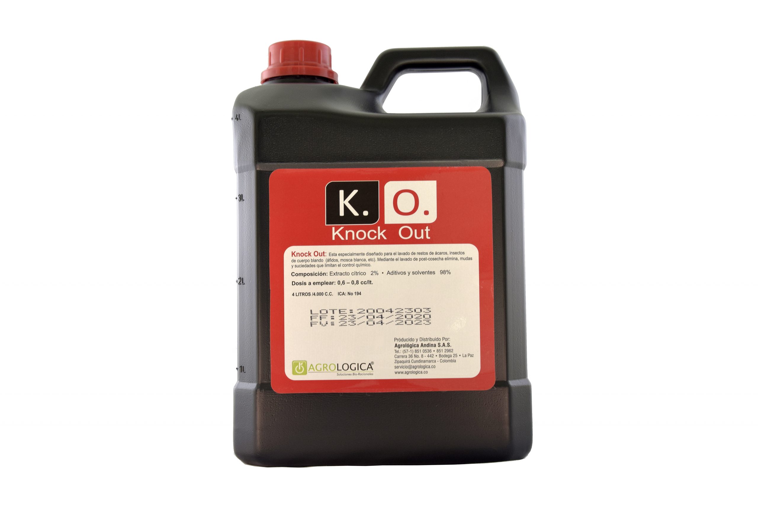 Knock Out es un jabón agrícola especialmente diseñado para limpiar impurezas en las plantas, residuos de insectos, exuvias y telarañas de ácaros, y suciedad producida por el polvo. Es un producto único e indispensable dentro de una rotación para el manejo integral de ácaros (adultos, larvas, ninfas), adultos de mosca blanca e inmaduros de áfidos, tanto en procesos de campo como en post-cosecha, en cultivos de flores, hortalizas y frutas.